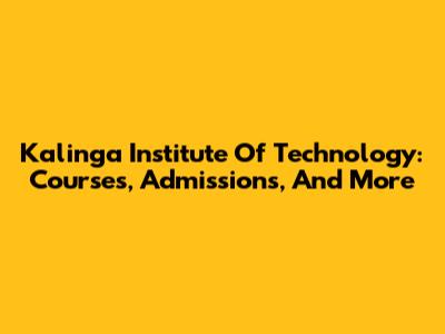 Kalinga Institute Of Technology: Courses, Admissions, And More