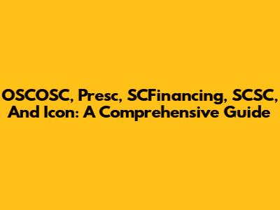 OSCOSC, Presc, SCFinancing, SCSC, And Icon: A Comprehensive Guide