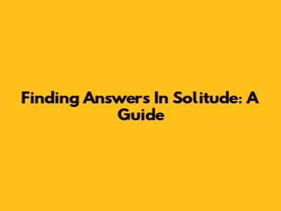 Finding Answers In Solitude: A Guide