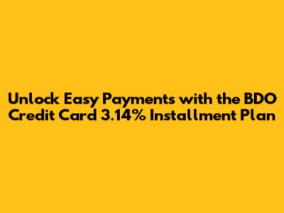 Hey guys, are you looking for a way to make those bigger purchases more manageable? Well, buckle up because today we're diving deep into the BDO Credit Card 3.14% Installment Plan. This nifty feature from BDO (Banco de Oro) is designed to help you spread out the cost of your purchases over a period of time, making it easier on your wallet. We're talking about a super low interest rate of just 3.14% per month, which is a pretty sweet deal when you consider the alternative of paying the full amount upfront. This plan is perfect for those times when you need a new gadget, want to renovate your home, or even plan that dream vacation but don't want to drain your savings all at once. We'll break down exactly how it works, who can apply, and what you need to know to make the most of this fantastic offer. So, if you're a BDO credit cardholder or thinking about becoming one, stick around because this information is gold!