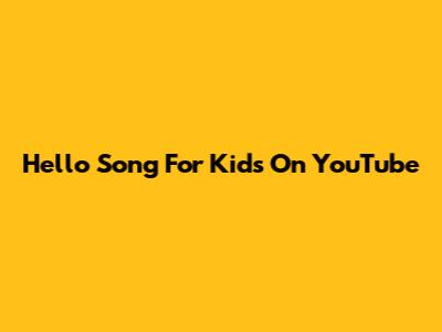 Hello Song For Kids On YouTube