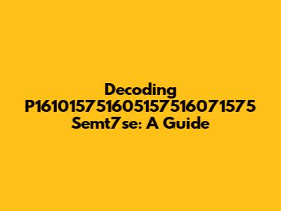 Decoding P161015751605157516071575 Semt7se: A Guide