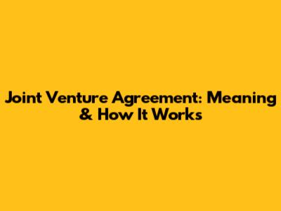 Joint Venture Agreement: Meaning & How It Works