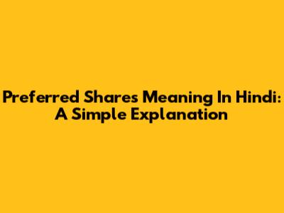 Preferred Shares Meaning In Hindi: A Simple Explanation