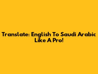 Translate: English To Saudi Arabic Like A Pro!