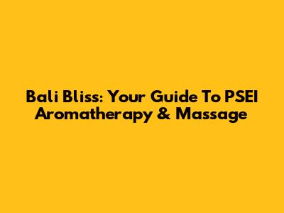 Bali Bliss: Your Guide To PSEI Aromatherapy & Massage