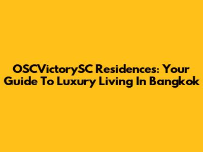 OSCVictorySC Residences: Your Guide To Luxury Living In Bangkok
