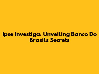 Ipse Investiga: Unveiling Banco Do Brasil's Secrets