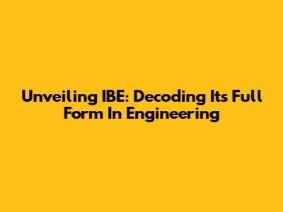 Unveiling IBE: Decoding Its Full Form In Engineering