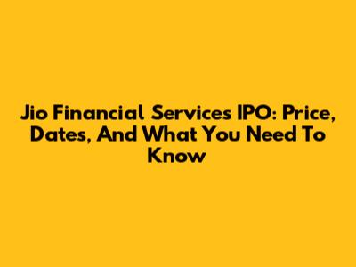 Jio Financial Services IPO: Price, Dates, And What You Need To Know