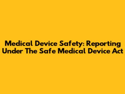 Medical Device Safety: Reporting Under The Safe Medical Device Act