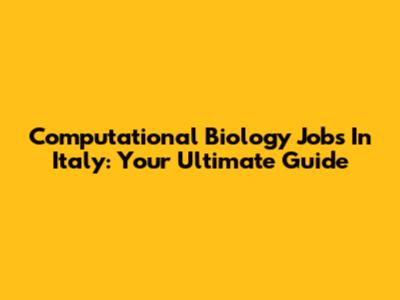Computational Biology Jobs In Italy: Your Ultimate Guide