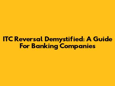ITC Reversal Demystified: A Guide For Banking Companies
