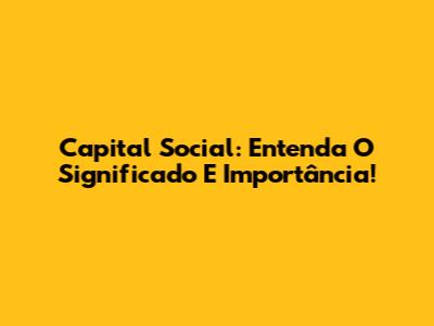 Capital Social: Entenda O Significado E Importância!