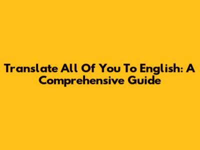 Translate "All Of You" To English: A Comprehensive Guide
