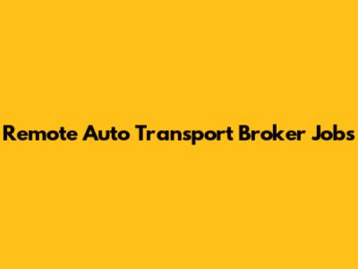 Remote Auto Transport Broker Jobs