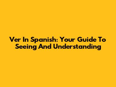 Ver In Spanish: Your Guide To Seeing And Understanding