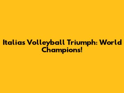 Italia's Volleyball Triumph: World Champions!