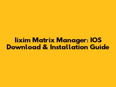 Iixim Matrix Manager: IOS Download & Installation Guide