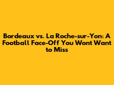 Hey sports fanatics! Get ready to dive into the thrilling world of Bordeaux versus La Roche-sur-Yon football. We're talking about a face-off that's more than just a game; it's a clash of strategies, a showcase of talent, and a battle for glory on the pitch. Whether you're a seasoned follower of Ligue 1, a passionate supporter of the lower divisions, or just a casual fan looking for some exciting football action, you're in the right place. We'll be breaking down everything you need to know about this matchup, from the teams' histories and player profiles to the potential game dynamics and what makes this encounter a must-watch event. So, grab your jerseys, prepare your snacks, and let's get into the heart of the action! This will be a great one, guys.