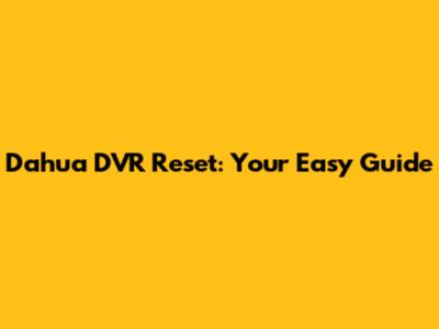 Dahua DVR Reset: Your Easy Guide