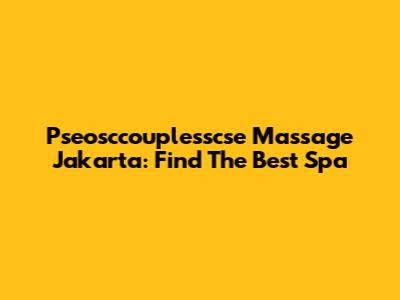 Pseosccouplesscse Massage Jakarta: Find The Best Spa
