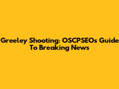 Greeley Shooting: OSCPSEO's Guide To Breaking News