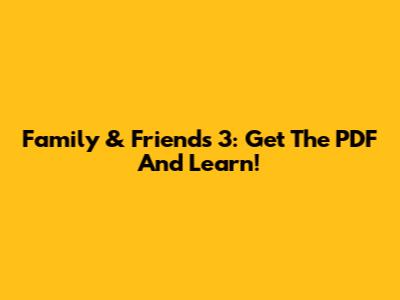Family & Friends 3: Get The PDF And Learn!