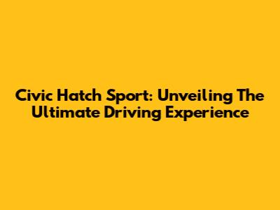 Civic Hatch Sport: Unveiling The Ultimate Driving Experience