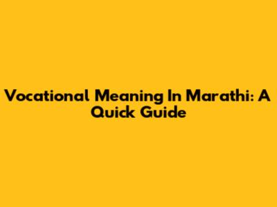 Vocational Meaning In Marathi: A Quick Guide