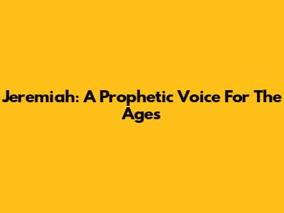 Jeremiah: A Prophetic Voice For The Ages