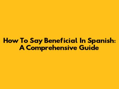How To Say 'Beneficial' In Spanish: A Comprehensive Guide