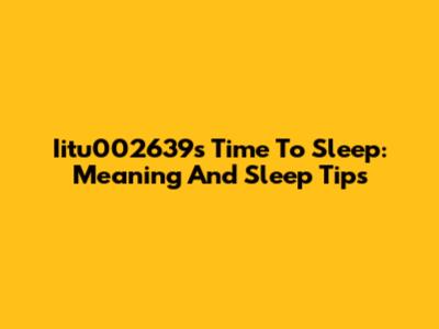Iitu002639's Time To Sleep: Meaning And Sleep Tips