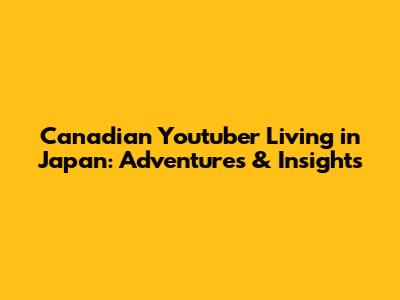 Identifying specific Canadian YouTubers living in Japan can be a fun journey of discovery, as the landscape of content creators is constantly evolving. Here are a few examples of Canadian YouTubers living in Japan who have garnered attention for their unique content and engaging perspectives: