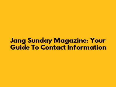 Jang Sunday Magazine: Your Guide To Contact Information