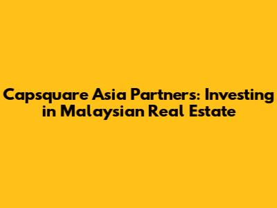 Hey everyone, let's dive into the world of Capsquare Asia Partners Limited! They are a big player in the investment game, focusing specifically on Malaysian real estate. If you are looking to understand more about them, you're in the right place. We'll break down everything from their investment strategies to the projects they're involved in, giving you the lowdown on what makes them tick. Whether you're a seasoned investor or just starting out, this should give you a good overview. Let's get started, shall we?