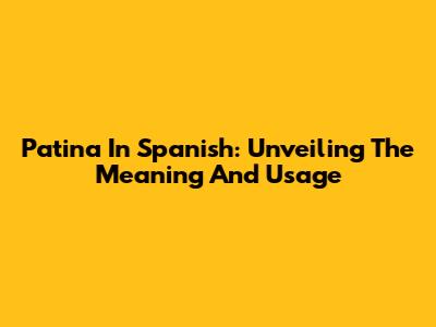 Patina In Spanish: Unveiling The Meaning And Usage