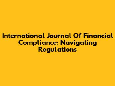 International Journal Of Financial Compliance: Navigating Regulations