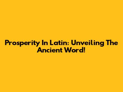 Prosperity In Latin: Unveiling The Ancient Word!