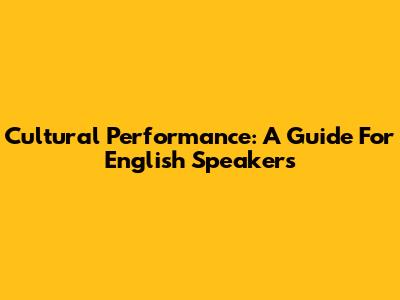 Cultural Performance: A Guide For English Speakers