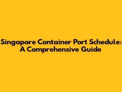 Singapore Container Port Schedule: A Comprehensive Guide