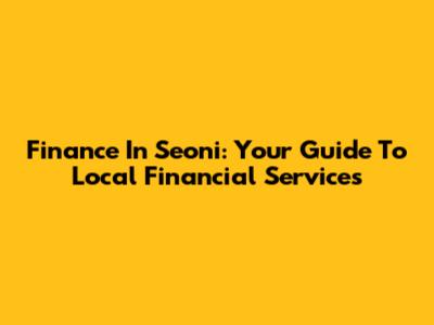 Finance In Seoni: Your Guide To Local Financial Services