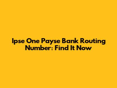 Ipse One Payse Bank Routing Number: Find It Now