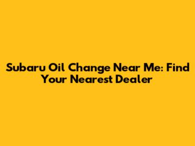 Subaru Oil Change Near Me: Find Your Nearest Dealer