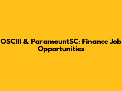OSCIII & ParamountSC: Finance Job Opportunities