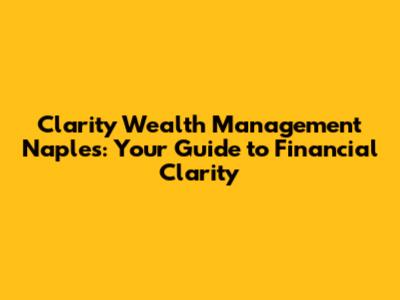Hey guys! Navigating the world of wealth management can feel like trying to find your way through a dense jungle, right? Especially when you're looking for expert guidance in a place as beautiful and dynamic as Naples, Florida. But, fear not! Because we're diving deep into Clarity Wealth Management Naples, a firm dedicated to helping you achieve your financial goals with crystal-clear strategies. We'll explore what makes them stand out, how they can help you, and why choosing the right wealth management partner is crucial for your financial future. Let's get started, shall we?