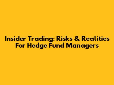 Insider Trading: Risks & Realities For Hedge Fund Managers