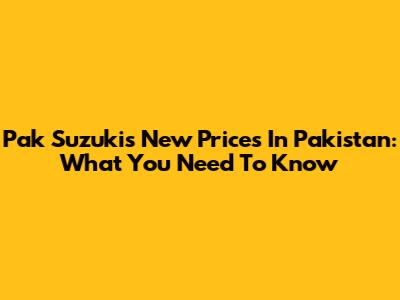 Pak Suzuki's New Prices In Pakistan: What You Need To Know