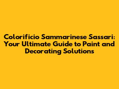 Unveiling Colorificio Sammarinese Sassari: A Legacy of Color
