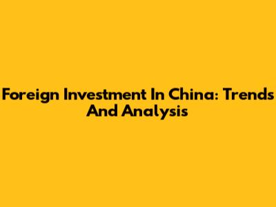 Foreign Investment In China: Trends And Analysis